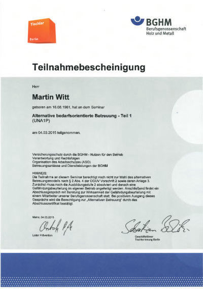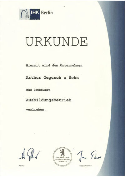 Eingetragen im Unternehmer und Lieferantenverzeichnis des Senats von Berlin für Bauaufträge ULV - Nr.: 1532; Sicherheit - Nr.: 11 25 90 82